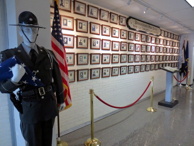 This is the fallen trooper memorial wall inside the Pennsylvania State Police Training Academy -- a truly classy memorial to the fallen heroes of PA.